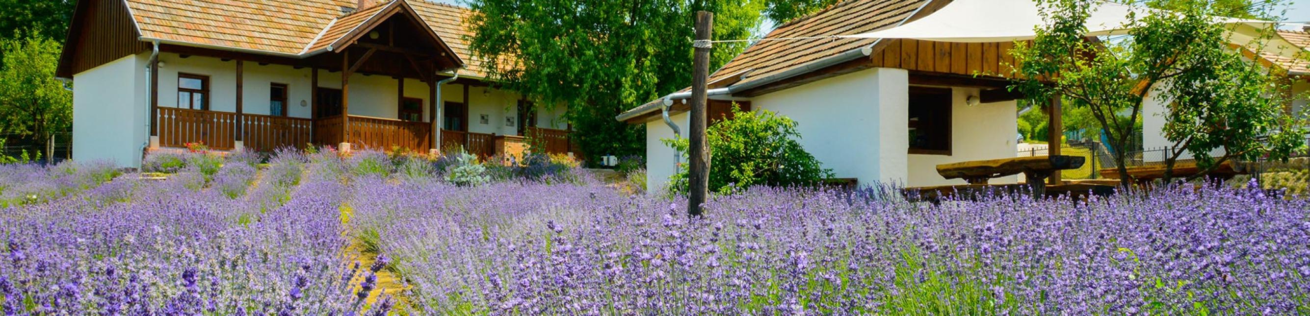 Nevét a kerítés mellett végigfutó, 800 tő dús bokrú és átható illatú levendulasorról kapta. Június-július hónapokban fővirágzása idején a lila bokrok illata és látványa megnyugtatja az ide érkezőket. A négy napraforgós minősítésű vendégház két elszeparálható részből áll, mindegyikben kettő kétágyas, külön fürdőszobás szoba található, így összesen négy szoba áll a vendégek rendelkezésére. Mindkét apartmanban teljesen felszerelt konyha várja a vendégeket. A Levendula Vendégház mellett található a Levendula Bár, ahol a nyári hónapokban frissítőkkel várjuk a megfáradt turistákat.