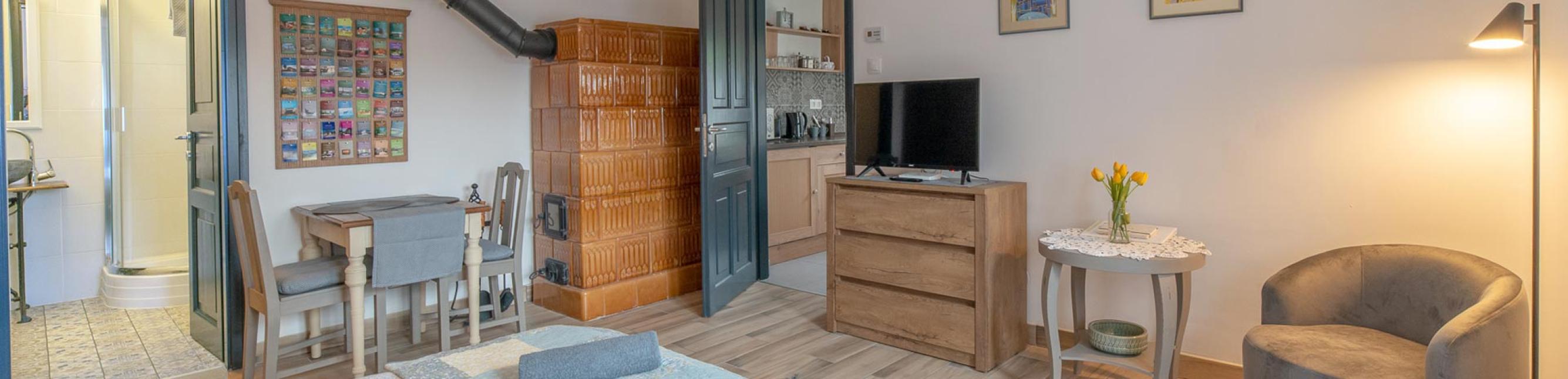 Az apartman mellett ebben a házban közösségi tér is kialakításra került, mert fontos volt a vendégházakba érkező vendégeinknek egy olyan helyet kialakítani, ahol akár 18 fő is összejöhet egy beszélgetésre, egy céges összetartásra, egy tréningre vagy akár egy közös főzésre. A terem rendelkezik saját felszerelt konyhával, beépített projektorral és wifi hozzáféréssel is. A házhoz tartozó gyönyörű kert és a fedett terasz igazi kikapcsolódást biztosít a vendégek számára.