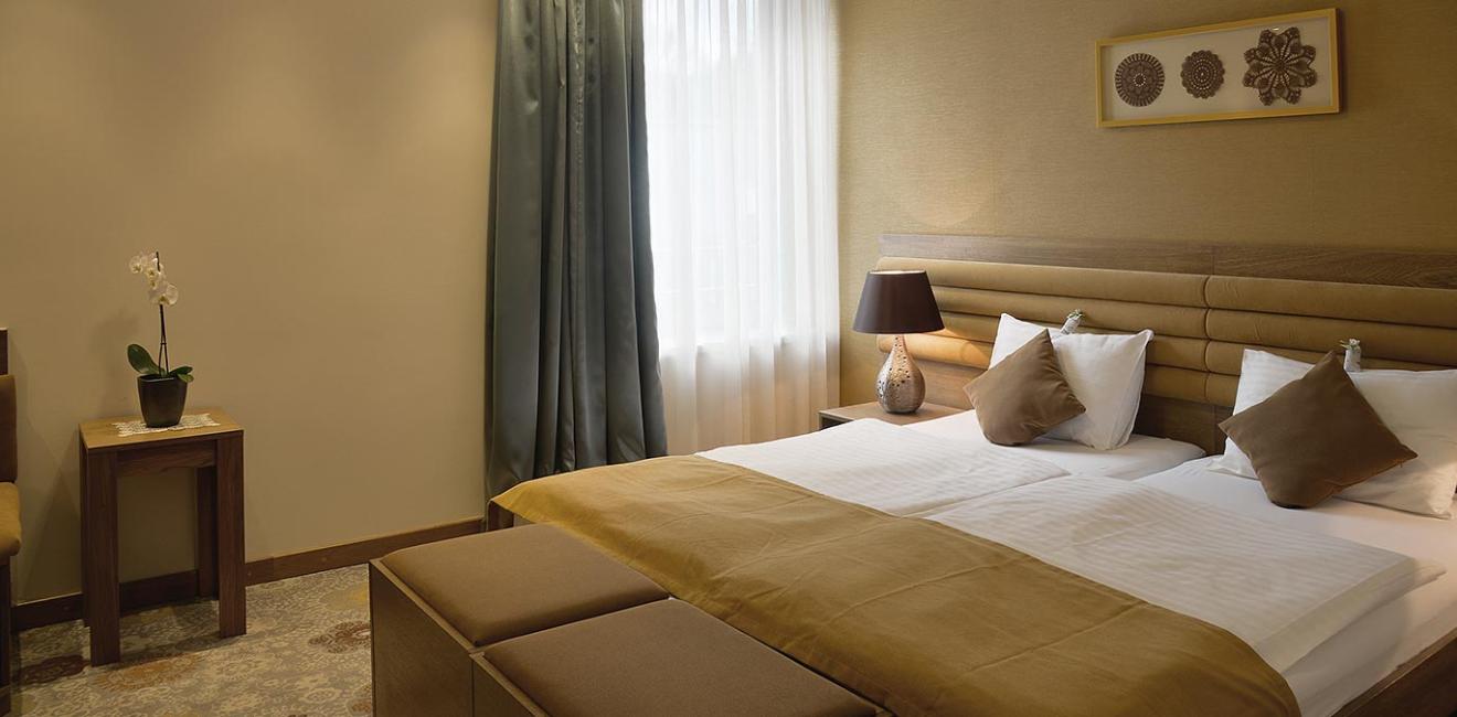 A modern szállodai szobáinkat a letisztultság jellemzi, a nyugtató színek a magas minőségű matracok a teljes kikapcsolódást garantálják.